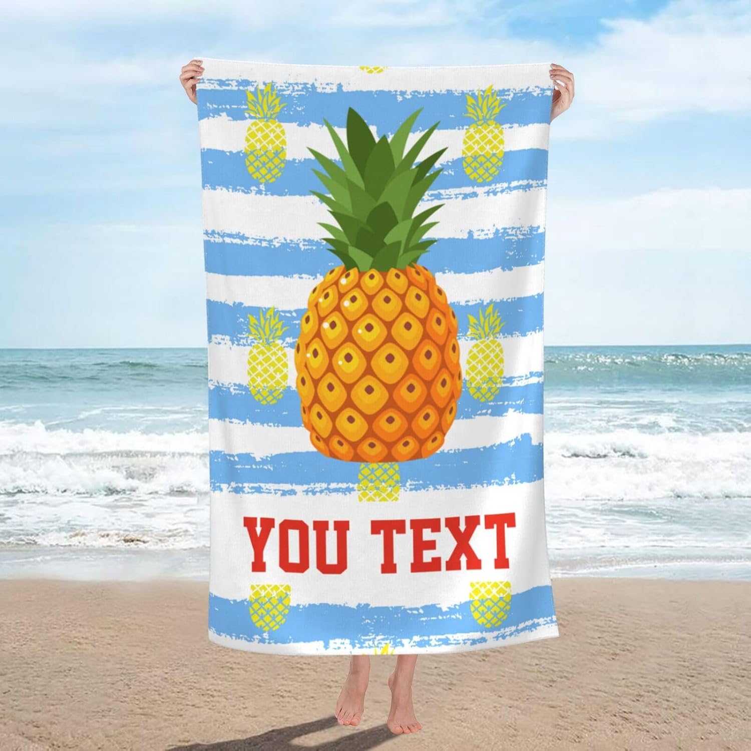 Custom Beach Towel with NameCUSTOMIZED BEACH TOWELClick "Customize Now" button to create your own personalized beach towel.Don't you want to prepare a cool and fun beach towel for the upcoming summer?High Quality MaterialOversized bath towel for bathroom adopt microfiber, the surface terry cloth is delicate, fast-drying and soft, breathable and water-absorbing, not easy to pilling and deforming, it's a must-have after your bath or shower!Sand-free MicrofiberDon't let the sand affect your good mood of the day! Just hang the sand-free microfiber towel to dry after use or dry it in the sun, and shake the surf beach towel to remove the sand easily! It means that the sand on the beach will not leave messy things in your car or backpack on the way home.Easy to CareMachine wash the sea world life beach towels oversized thick in warm water using mild detergent and tumble dry on low.Package Includes1 x Beach TowelPerfect Gift100 Days Anniversary, Wedding Gift, Valentine's Day Gift, Christmas Gift, Birthday Gift, New Year Gift, Valentines Day Gift, Mothers Day Gift, Graduation Gift, Best Friend Gift.