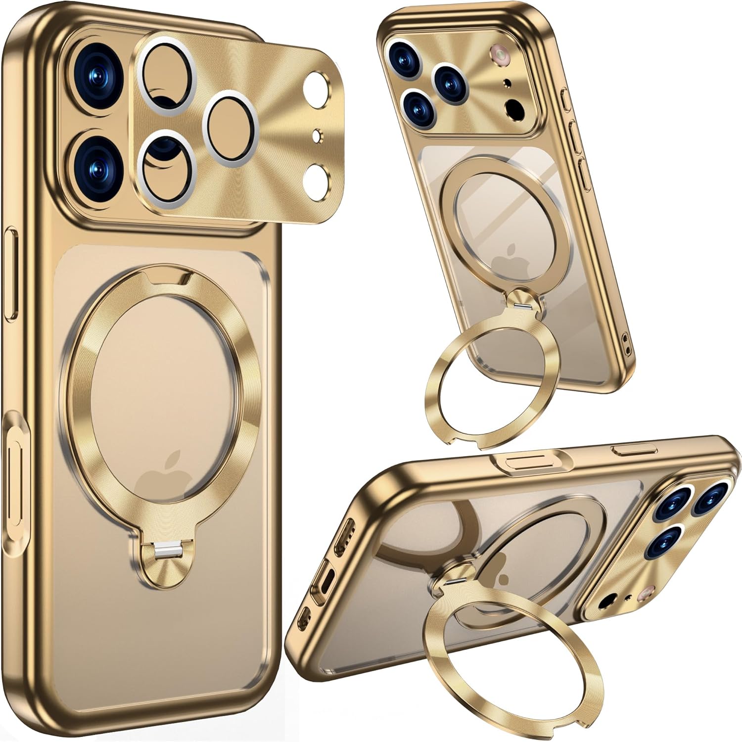 1. Compatible With iPhone 17 Pro Max: The Titanium Elite Case Experience the official-grade titanium aesthetic with a fade-resistant, soft frame that guarantees lasting elegance. The durable crystal back integrates a MagSafe-compatible ring stand and raised camera guard—delivering robust protection in a refined, slim profile. 2. 360° MagSafe Ring Stand: Your Multifunctional Hub Featuring a sleek CD-patterned metal ring with upgraded N52 magnets, this isn’t just a magnetic anchor—it’s also a fully adjustable stand. Swivel 360° and tilt up to 120° for ideal viewing angles in portrait or landscape. Perfect for FaceTime, streaming, or following recipes hands-free. 3. Full-Coverage Aluminum Camera Guard: Avoid Costly Repairs Your iPhone's advanced camera system is both fragile and expensive to fix. Our full-wrap aluminum guard, precision-machined for complete coverage, acts as a first line of defense against scratches, drops, and impacts. It’s durable insurance against the high cost of camera repairs, preserving your phone’s photographic capabilities and value. 4. Unmatched MagSafe Ecosystem Integration: Strong Hold for Every Accessory Experience the full potential of MagSafe. The powerful built-in N52 magnet ring ensures a perfect, secure snap with every compatible accessory. From wireless chargers and card wallets to car mounts and battery packs, enjoy a steadfast connection that unlocks a world of possibilities without ever slipping.